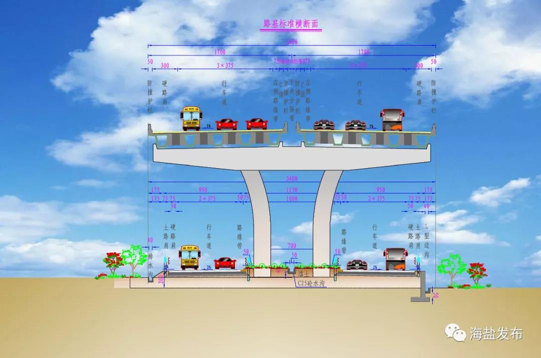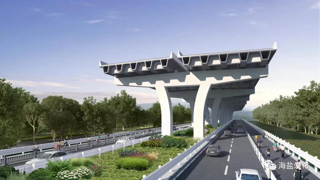 该项目位于嘉兴市南湖区和海盐县,是乍嘉苏高速和杭浦高速的联络线,按双向六车道高速公路标准设计,设计速度每小时120公里。为集约利用土地资源,全线采用高架方案,部分桥下空间利用,桥面宽34米。