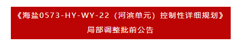 因城投安置需求,拟对《海盐0573-HY-WY-22(河滨单元)控制性详细规划》进行局部调整,现对该调整征求意见,调整内容为(另见附图):