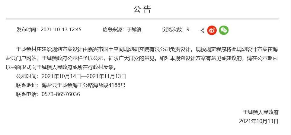 现按规定程序将此规划设计方案在海盐县门户网站、于城镇政府公示栏予以公示,征求广大群众的意见。