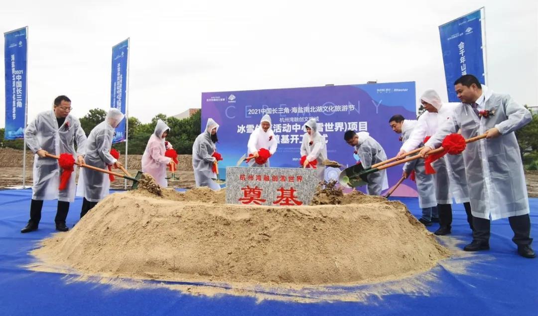 10月18日,2021中国长三角.海盐南北湖文化旅游节重大文旅项目开工暨融创文旅城冰雪活动中心(雪世界)项目开工奠基仪式举行。