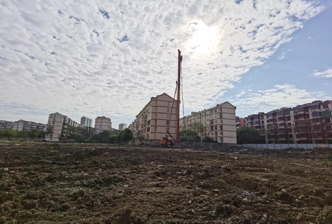 “此次打桩,我们采用总长29.5米的长螺旋混凝土钢筋笼灌注桩,能够一边打桩,一边将泥土抽出来,最大程度不挤压周边地块,保证周边居民房和道路的安全。”项目现场负责人庄玉良说。
