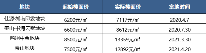 在鸿翔拿地之前,秦山项目是城南板块地价最高。
