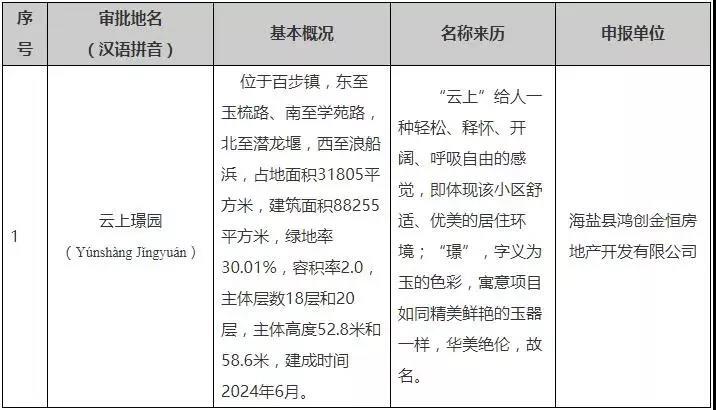 根据《海盐县地名管理办法》等有关规定,为切实做好海盐县地名命名工作,经县民政局审核,现将“云上璟园”地名予以公示,征求社会各界和广大市民的意见建议。