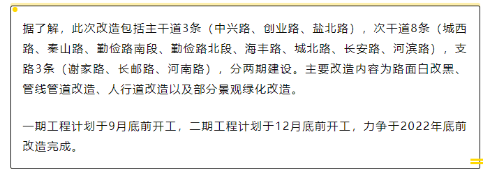 一期工程涉及7条道路,具体为:
