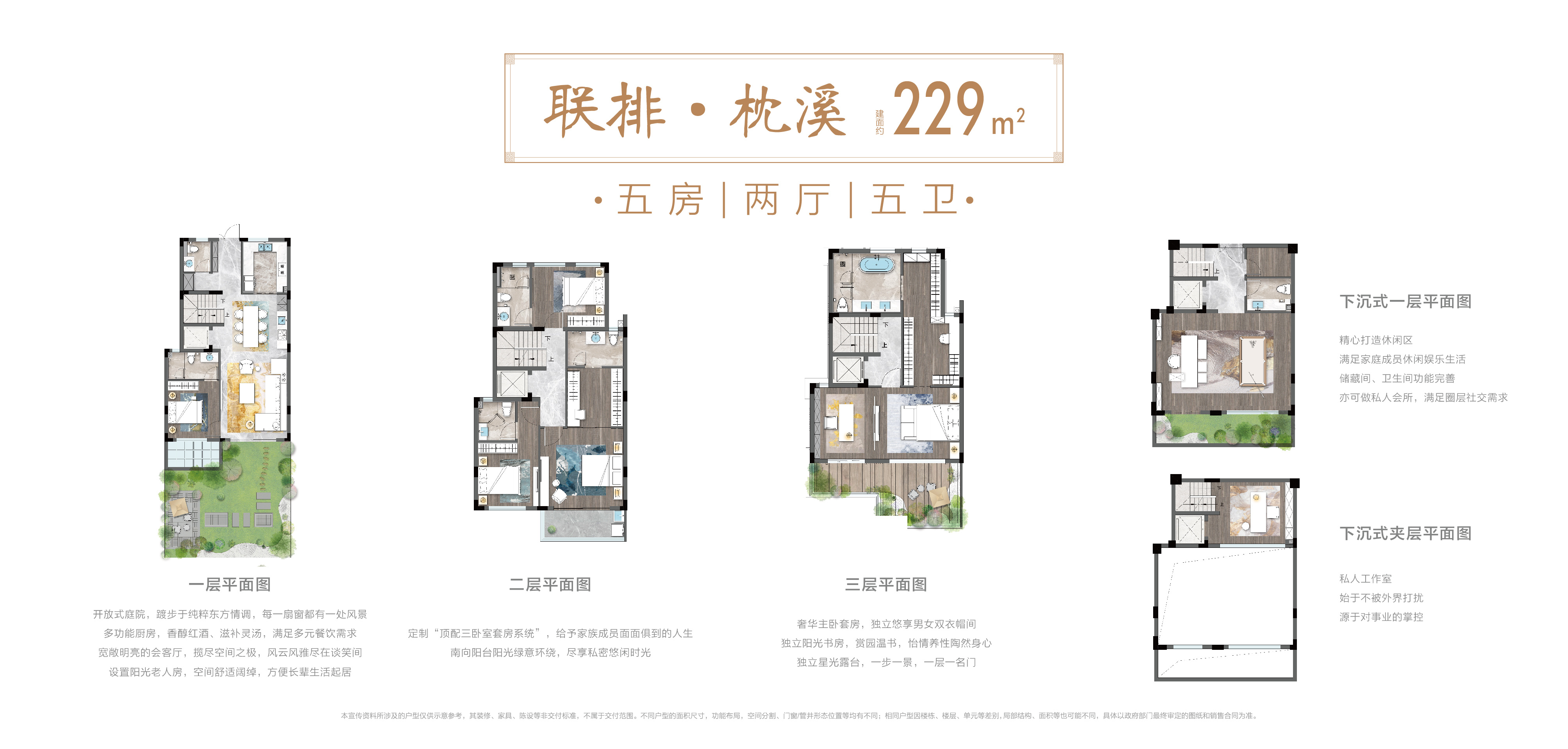 项目整体占地面积约2.21万方,建筑面积约2.24万方,绿地率约30%,容积率约1.01,建筑风格设计为现代中式,现代中式建筑继承了传统建筑的精髓和气质,采用传统建筑的坡屋顶,突出中国古建的型制美感,同时以现代的表现手法呈现建筑。形态上主力规划的是合院形式的别墅产品,产品线以院墅为主,另配置少量联排别墅及大尺度洋房,合院主力面积184平米及257平米、联排229平米,洋房164平米,共规划117套(其中院墅79套,联排10套,洋房28套),是十分纯粹的动静皆宜的高端改善项目。