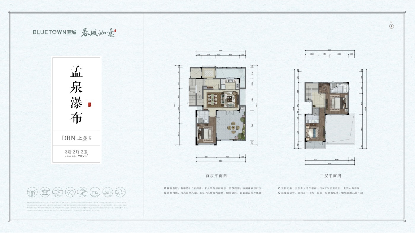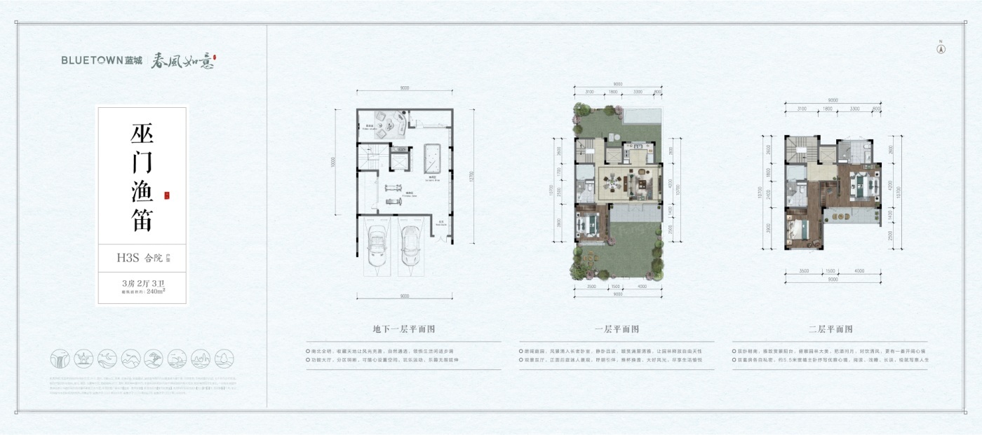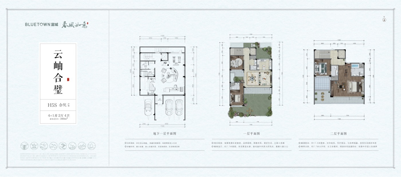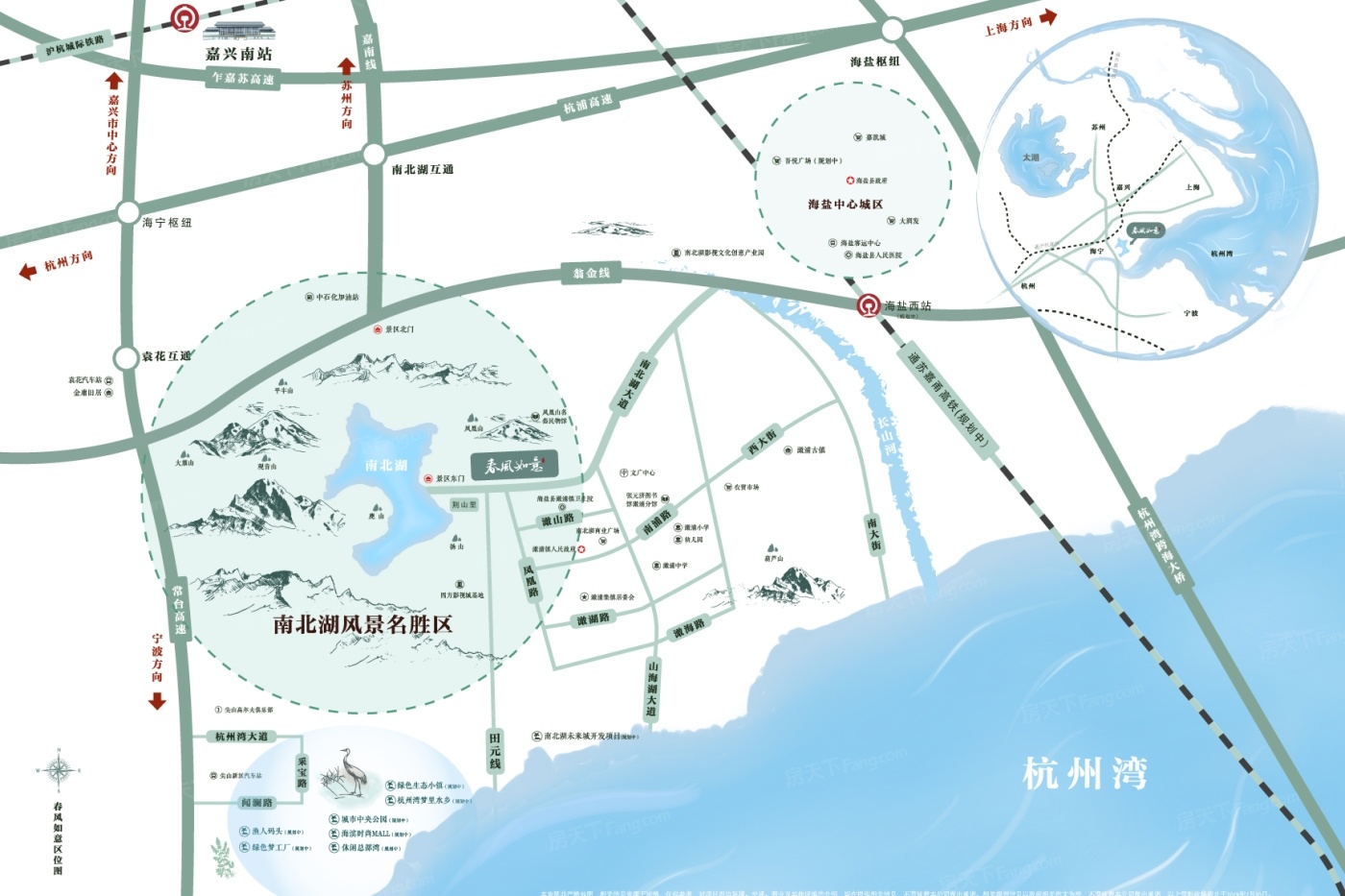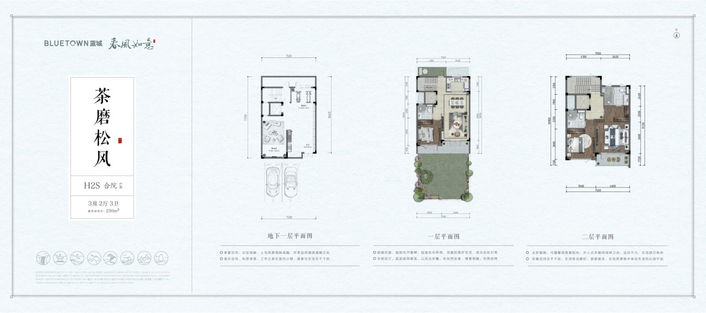 蓝城·春风如意以山为屏,与湖为邻,蓝城春风如意,落子海盐,择址南北湖畔,在山水围合中,让居者享受身体的养护和心灵的愉悦。 南北湖是我国融山海湖为一体的国家4A级旅游风景区,山湖交映、海波清平,环山、邻海、抱湖,是休闲旅游、居住养生的好去处。 春风如意旨在打造一处“粉墙黛瓦、院藏四季”的江南小院,以蓝城颐养2.0时代,为家人营造全龄颐乐的生活方式。 医食住行、颐乐学为、怡康养护,春风如意将以更为全面的生活配套,细节入微的全龄关怀,礼献一处南北湖畔的东方颐乐桃花源。叠院地上三层、地下一层;合院地上两层、地下一层。